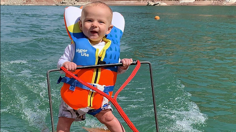 The video shows six-month-old Rich Humpherys water skiing on Lake Powell with his dad Casey by his side.
