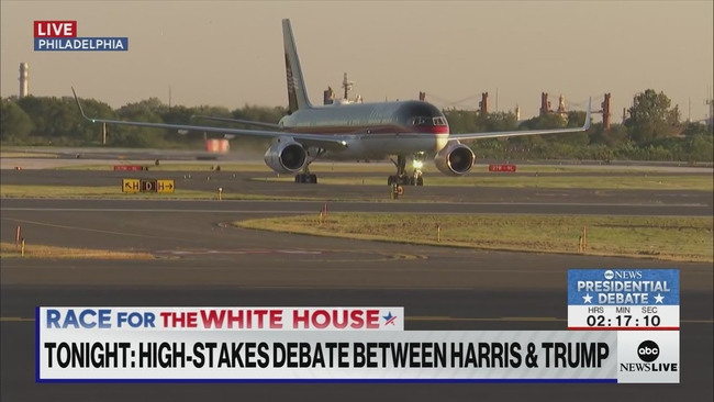 Trump landed at Philadelphia International Airport a short while ago for the debate.