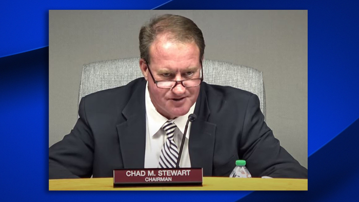 Chad Stewart allegedly rear-ended a stopped school bus and then drove around and left the scene.