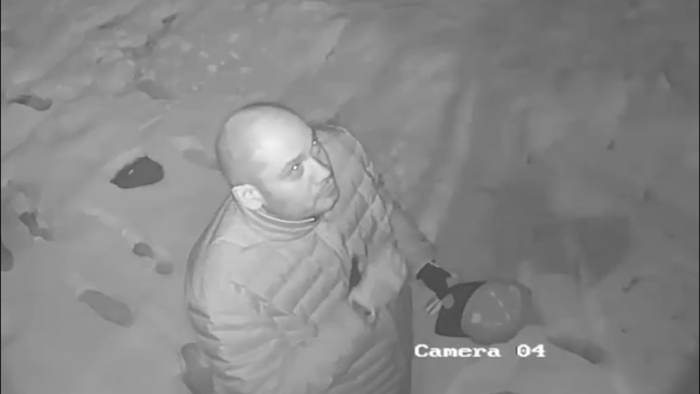 Surveillance video showed the man removing his hat before making the sign of the cross. Then, he grabbed a large brick and smashed a display window.