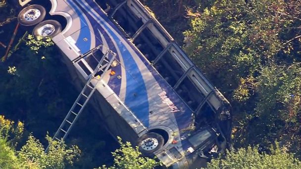 The bus, carrying students from Farmingdale High School, rolled over and slid off Interstate 84, down into a 50-foot ravine around 1:12 p.m. on Thursday, New York Gov. Kathy Hochul said.