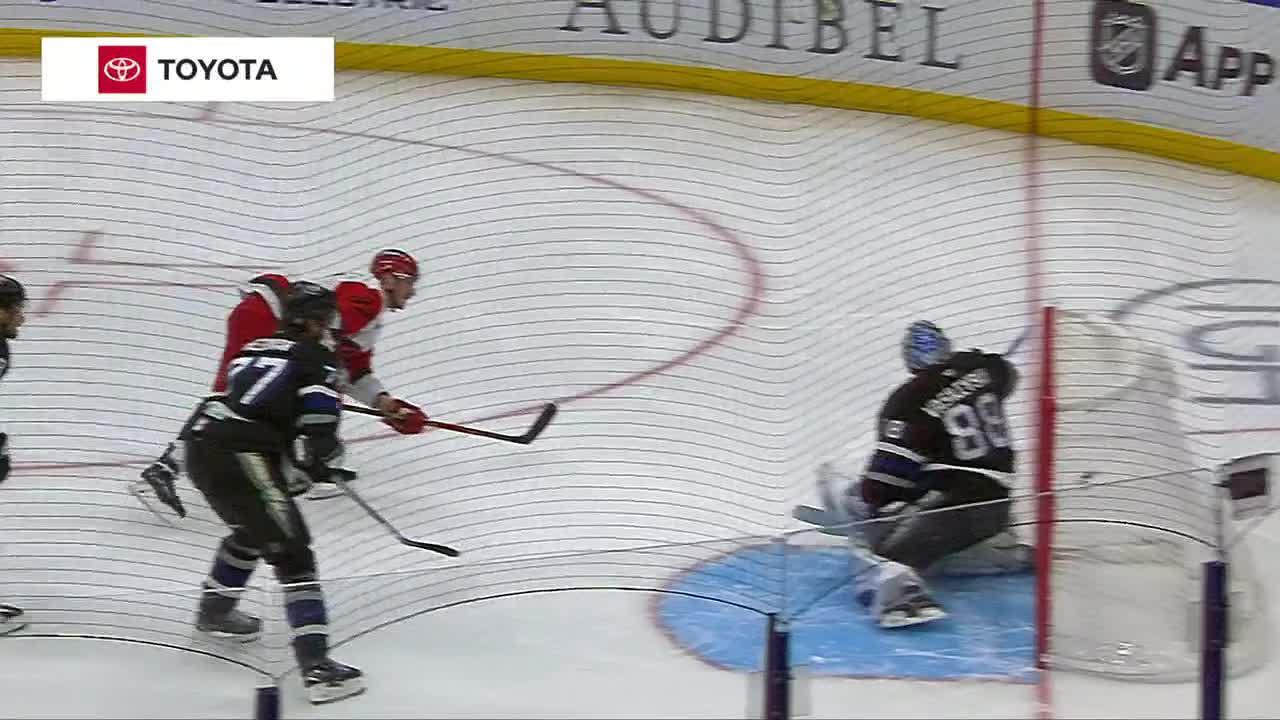 Martinook broke the tie when he swept a puck from outside the left circle toward the net that hit the inside of the pants of Victor Hedman and hit the inside of the far post at 9:18 of the third period.