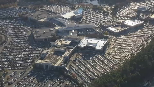 Chopper 11 flew over crowded parking lots at the Streets at Southpoint in Durham and Crabtree Mall in Raleigh.