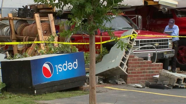 The powerful winds tore off the garage doors and blew off the roof of the fire department, smashing three trucks. Volunteer firefighters on duty say they took cover under the fire trucks to ride out the storm then climbed out from the rubble. Some had minor scrapes, cuts, and bruises.