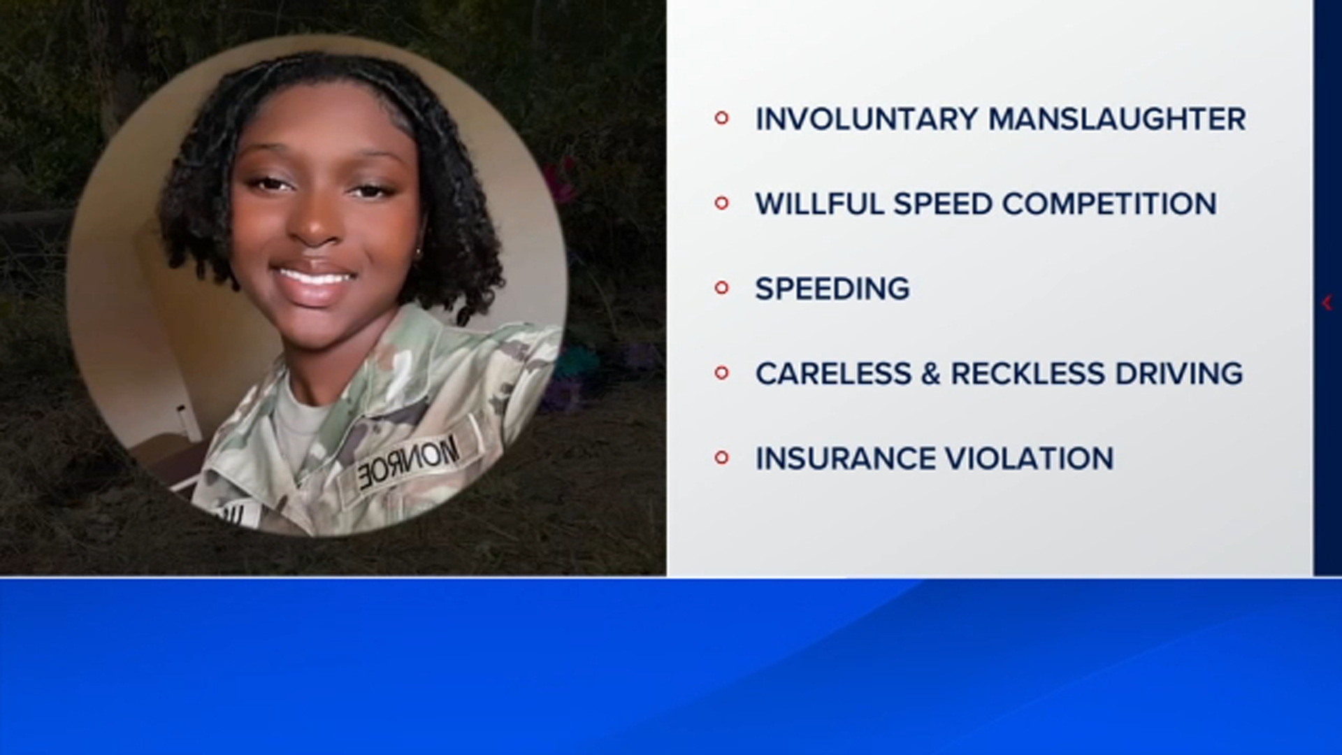 Its driver, Destini Rhinada Genwright, 19, of Fayetteville, who is Monroe's younger sister, was charged with willful speed competition, speeding, careless and reckless driving, and insurance violation.