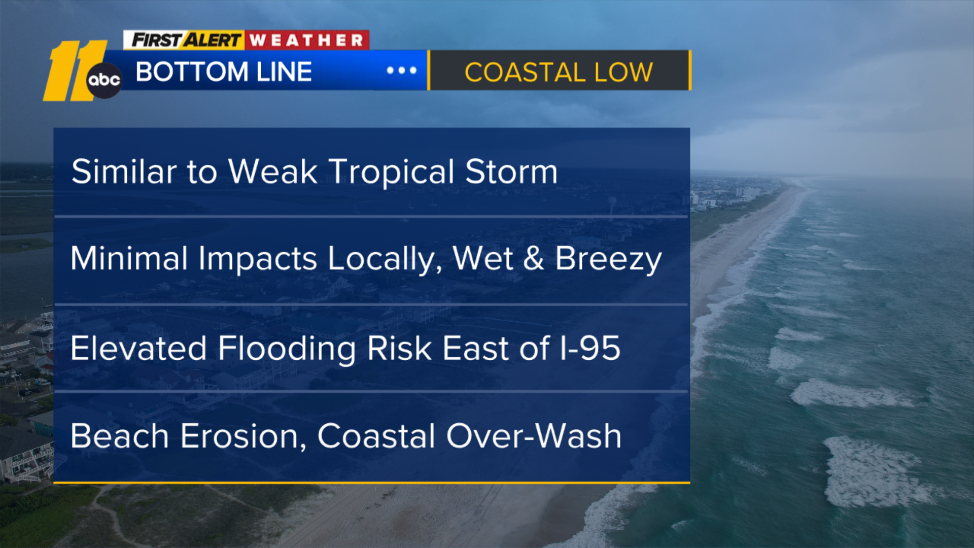 The persistent, strong winds from the unnamed nor'easter and unusually high king tides, when the moon is closer than usual to the Earth, had forecasters predicting more problems this weekend along the North Carolina Outer Banks, where a series of storms that moved well offshore have destroyed 10 houses in the past month and breached dunes. The pilings of some homes in Buxton were already in the waves before the worst of the storm.