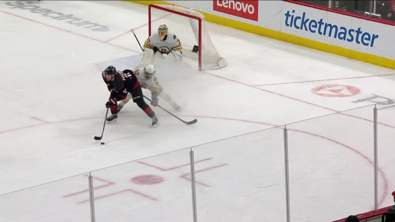 Slavin's first goal of the season helped offset a hat trick by Boston's Morgan Geekie. Andrei Svechnikov, K'Andre Miller, Logan Stankoven, William Carrier and Taylor Hall also scored for Carolina. Brandon Bussi overcame a shakey start and finished with 16 saves.