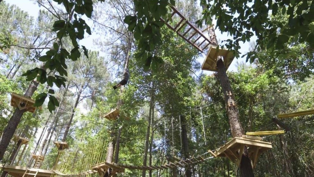TreeRunner Adventure Park is a combination of 70 suspended obstacles above the forest floor such as bridges, cargo nets, swinging logs, rings, skateboards and ziplines. The state-of-the-art course follows very specific safety standards, holding to both standards set forth by Association of Challenge Course Technology and American Society for Testing and Materials. Everyone has a blast while being securely connected.