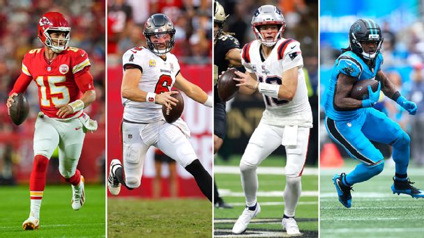 In addition to leading an efficient and diverse passing game -- eight different Chiefs recorded a reception on Sunday night -- Mahomes assisted his squad on the ground as well. The star quarterback recorded a rushing touchdown, leaving his mark on all four of Kansas City's trips to the end zone in its big win. It was Mahomes' second game this season with four combined passing and rushing touchdowns. He had no such games last season and has had just one such game over the previous two seasons combined.