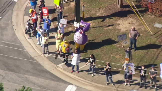 The protest officially began at noon, but many came out up to an hour ahead of time to begin lining up near Triangle Town Center.