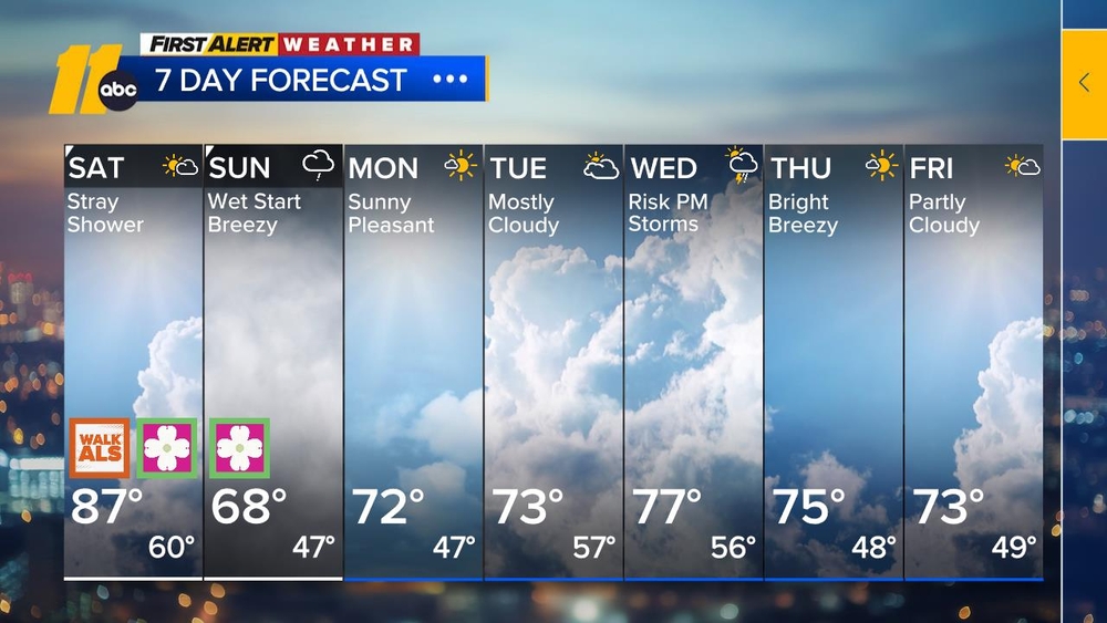 Warmer conditions gradually return through the week, reaching average highs by Thursday and climbing into the 70s by the weekend.