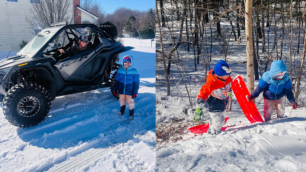 At the Lake Lynn sledding hill, people got creative with whatever they could find to sled. One of the more creative rides belonged to Alyssa Corrado, who grabbed her laundry basket when stores ran out of sleds.