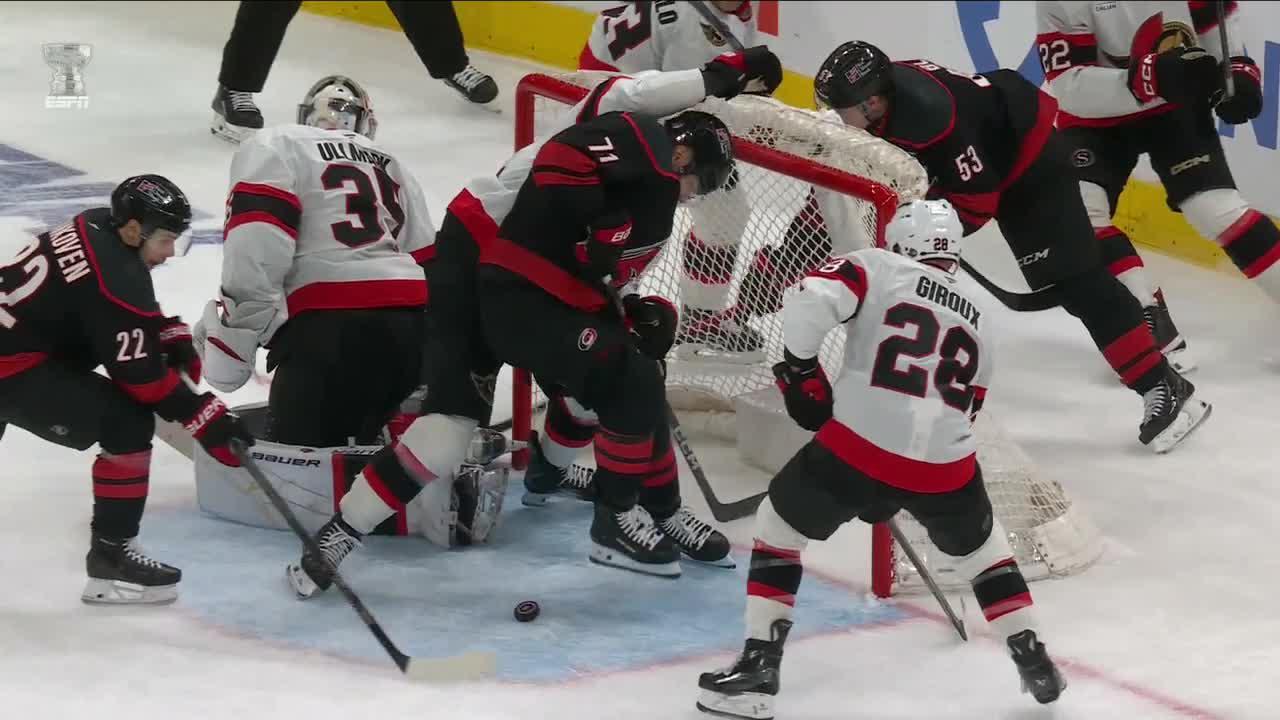 Moments later, he had another when Ottawa captain Brady Tkachuk had position at the top of the crease, only for Andersen to fall backward and make the stop with his legs in a sequence that had Hurricanes fans roaring "Freddie! Freddie!"