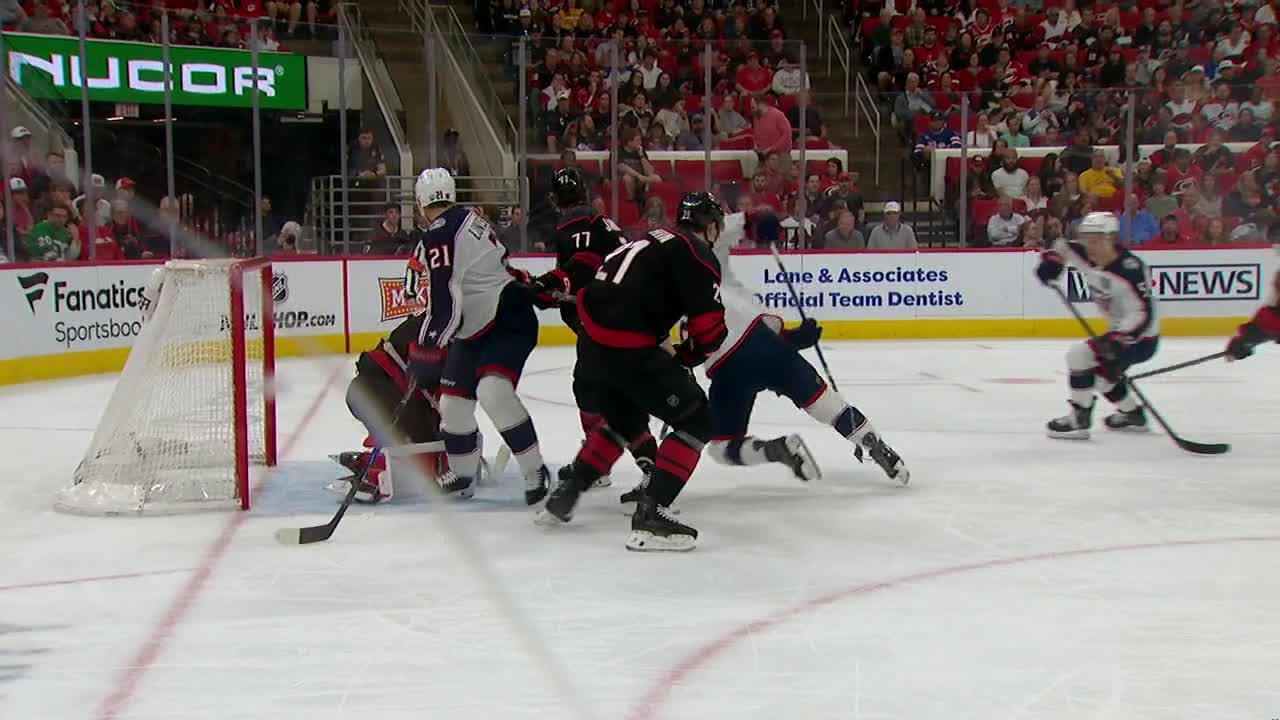 In the third meeting between the teams in less than 2 weeks, Stankoven scored 2:27 into the game on a deflection in front of Merzlikins on Carolina's first shot of the game. Stankoven's 17th goal of the season - adding to his career-high total - came at 8:52 when he tapped in a loose puck in the crease.
