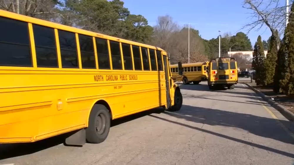Footage released by the Hadley Police Department shows a student crossing the street to board the school bus, with a car nearly hitting the child. In the video, a stop sign on the side of the bus can be seen fully extended before the youngster walks onto the roadway.