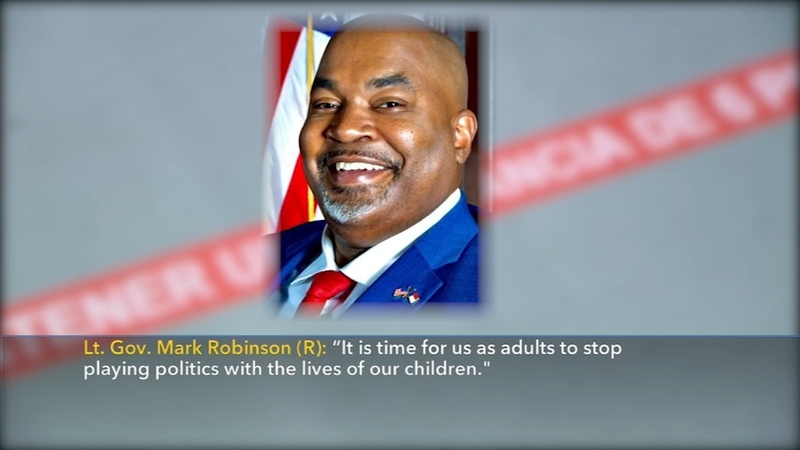 "It is time for us as adults to stop playing politics with the lives of our children," said Lt. Gov. Mark Robinson. "We can clearly see that they are hurting. It is time for us to stop this. It is time for us to stop worrying about our political future."