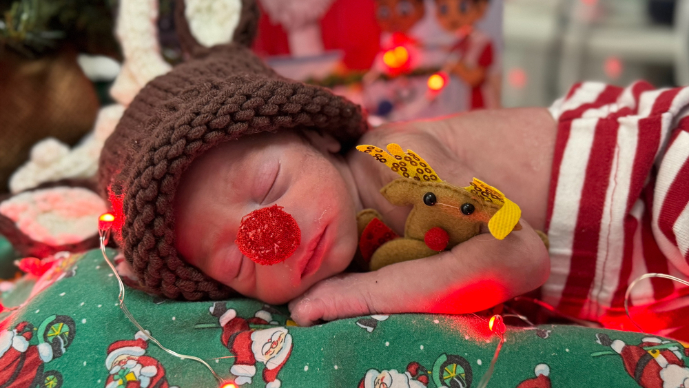 NICU babies dressed in festive Christmas costumes at UNC Health